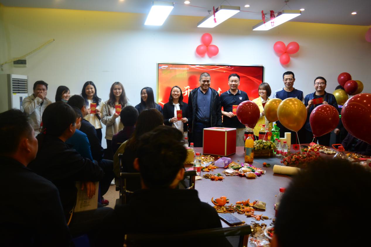 看!在這喜慶的日子里,大家開心地領(lǐng)到了“開門大吉拼手氣紅包”,同事們喜笑顏開,大家你一言我一語訴說著春節(jié)趣事及新一年的目標(biāo)和期許,場面那叫一個熱鬧。